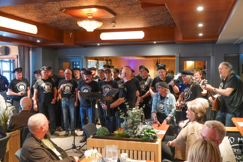 Siste post på programmet i samband med sjøsettinga av Søblomsten gjekk føre seg på Fjordhotellet. Hendinga skulle feirast med god gamaldags fest. Denne kvelden hadde arrangementskomiteen invitert til korpub med Shantykoret, Stephanie Lippert og Hallvar Djupvik. Nokre av kormedlemmane kan...